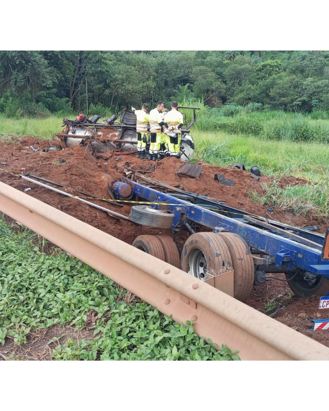 Corpo de Bombeiros detalha capotamento de caminhão com carga de ácido sulfúrico em Itatiaiuçu