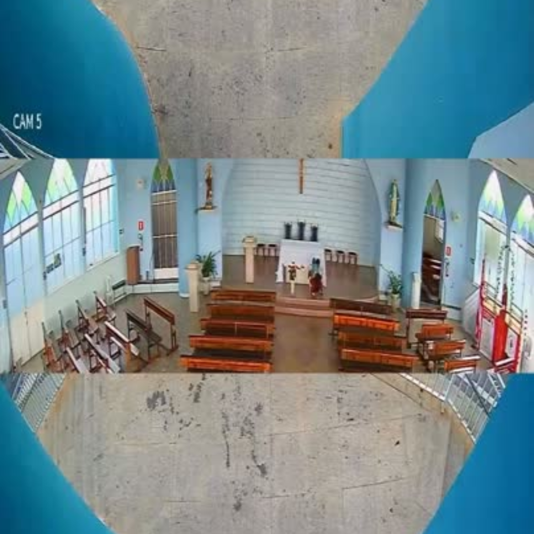 Imagens de câmeras de segurança da igreja registraram a movimentação dentro e fora do local.