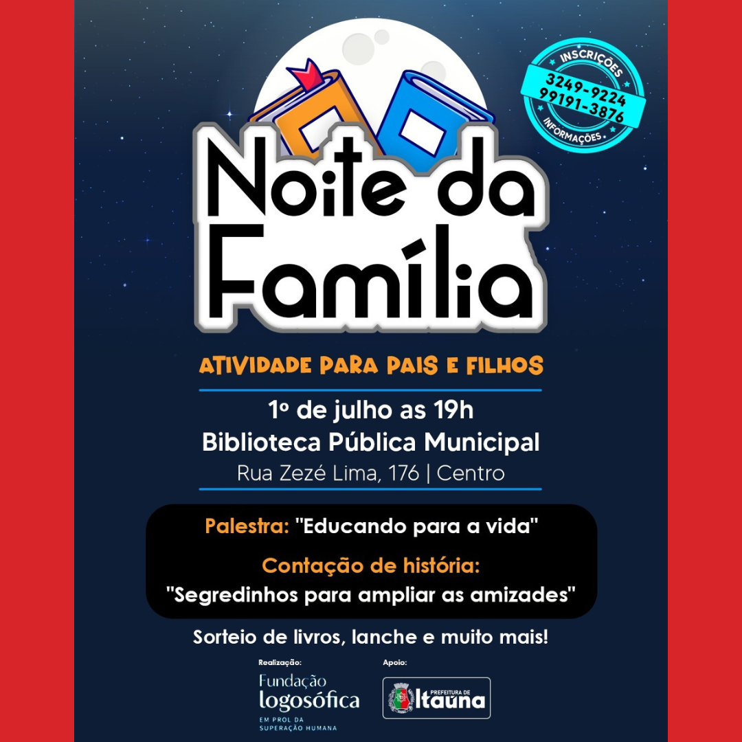 Na próxima segunda-feira (1º), a Biblioteca Pública Municipal de Itaúna realizará a Noite da Família. Um convite para pais e filhos para um momento de aprendizado, diálogo e imaginação, com uma programação que inclui palestra e contação de história.