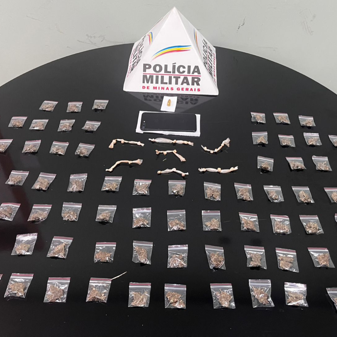 Foram apreendidas 77 buchas de maconha, 22 pedras de crack, uma munição intacta de calibre 9mm e um aparelho celular. Todo o material foi recolhido e encaminhado para a Delegacia de Polícia Civil, que dará continuidade às investigações.