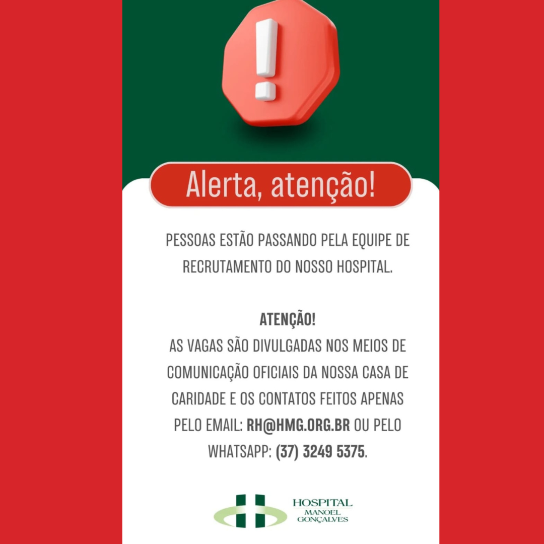O Hospital Manoel Gonçalves emitiu um comunicado oficial nesta quinta-feira (17), alertando a população sobre pessoas que estão se passando por membros da equipe de recrutamento da instituição para aplicar golpes em Itaúna.
