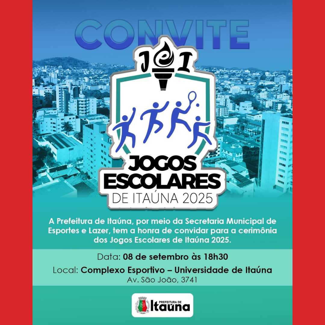 A Prefeitura de Itaúna, por meio da Secretaria Municipal de Esportes e Lazer, realiza no próximo dia 8 de setembro a cerimônia oficial de abertura dos Jogos Escolares de Itaúna 2025.