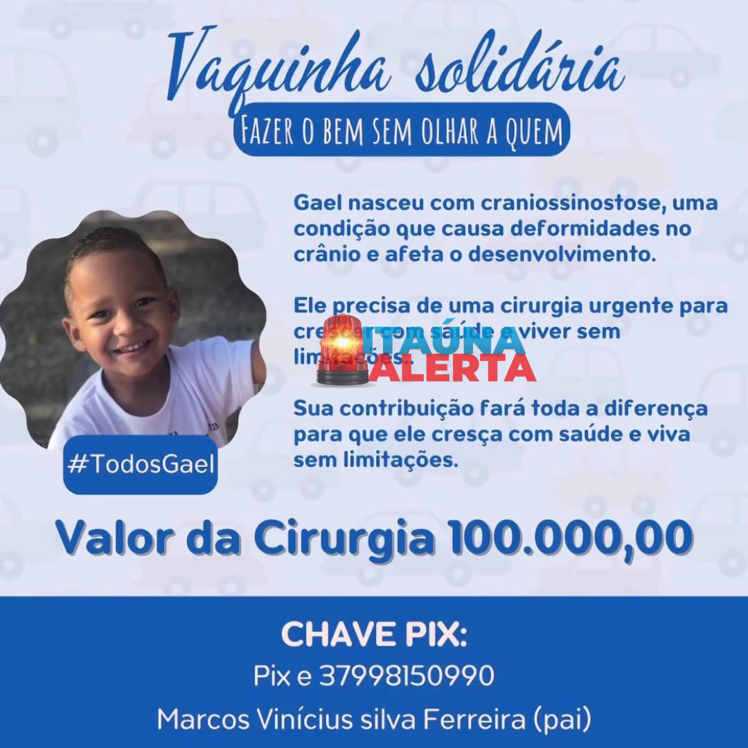 Para custear o tratamento, foi criada uma vaquinha solidária. As doações podem ser feitas por meio do Pix, utilizando a chave 37998150990, em nome de Marcos Vinícius Silva Ferreira, pai de Gael.