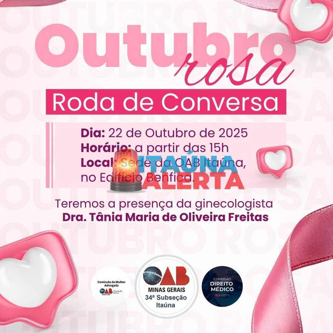 A Ordem dos Advogados do Brasil (OAB) de Itaúna realiza, nesta quarta-feira (22), uma Roda de Conversa em comemoração a campanha Outubro Rosa, a partir de 15:00, na sede da entidade, localizada no Edifício Benfica.