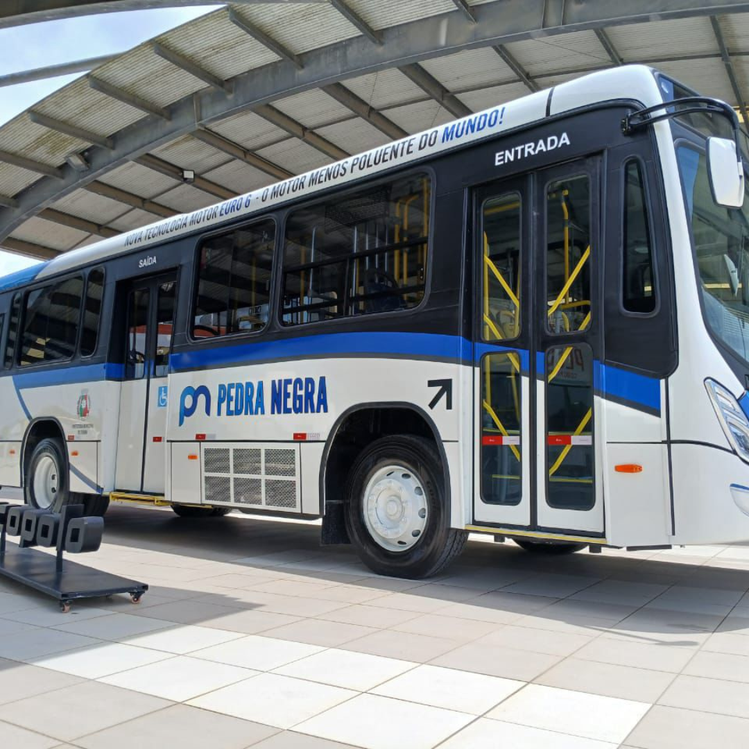 Os novos ônibus da Pedra Negra trazem melhorias voltadas à modernização e ao conforto dos usuários. Todos os veículos são climatizados, acessíveis e exibem a nova identidade visual da empresa, com o brasão do Município nas laterais.