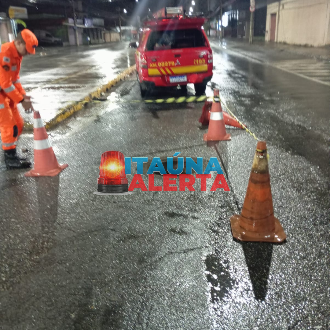 Em nova vistoria, foram encontrados dois bueiros destampados e parte da tampa do canal do rio removida, o que representava risco adicional. A equipe dos Bombeiros, em conjunto com a Prefeitura de Itaúna, providenciou o isolamento da área até a normalização da situação.