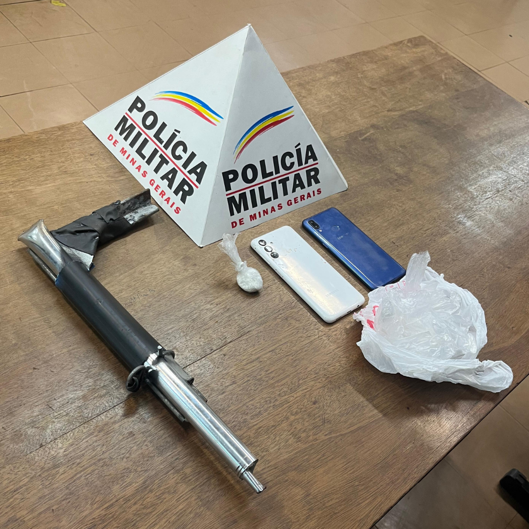 No ponto onde o homem estava foram apreendidos invólucros contendo substância semelhante à cocaína. Em continuidade às diligências, no endereço do suspeito, os policiais encontraram materiais usados para fracionar e embalar drogas, além de um artefato que se assemelhava a uma arma de fabricação artesanal.