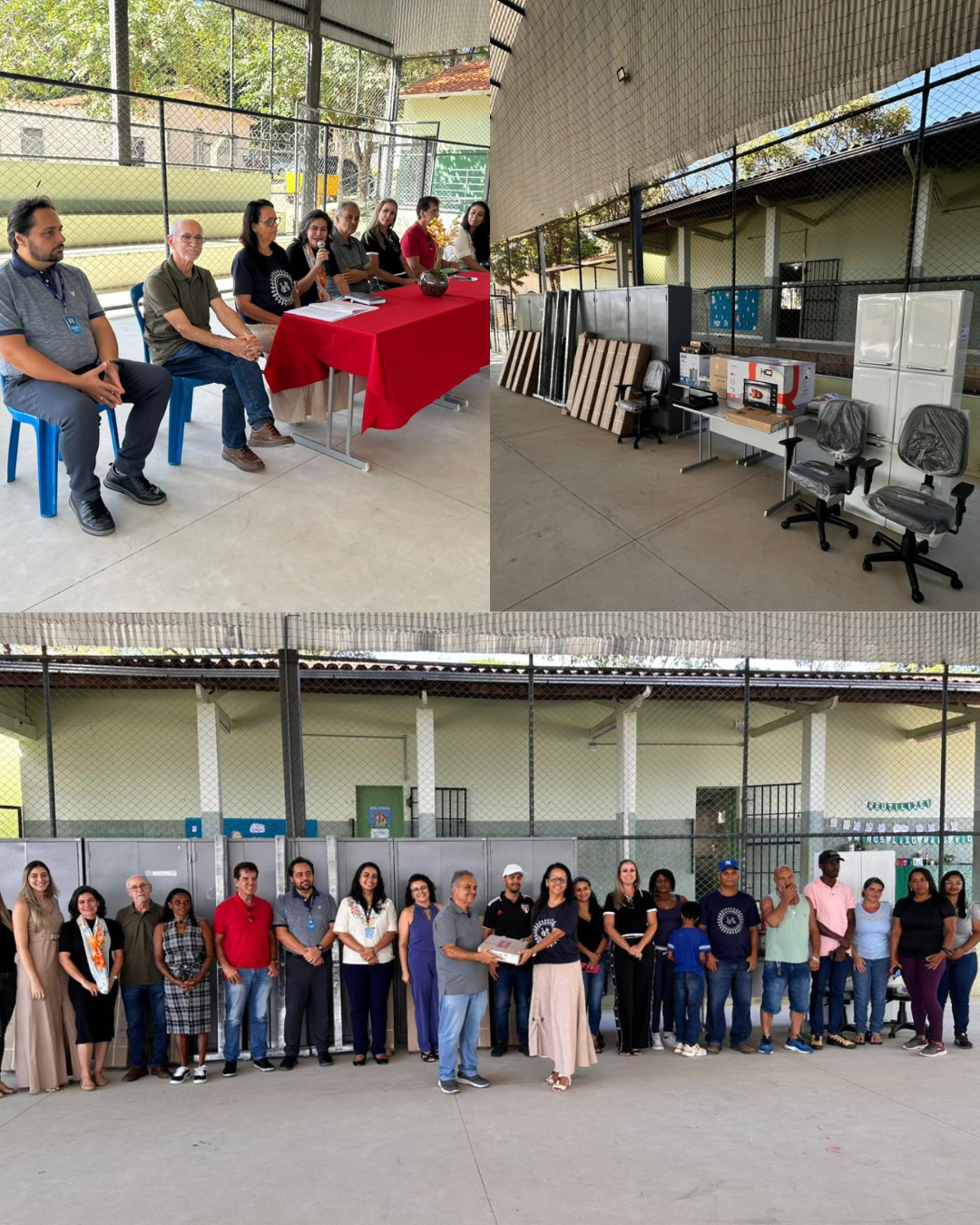 Foram entregues armários, estantes, mesas, cadeiras, notebook, forno elétrico, liquidificador industrial, refrigerador, purificador de água e encadernadora, entre outros itens necessários ao funcionamento da escola.