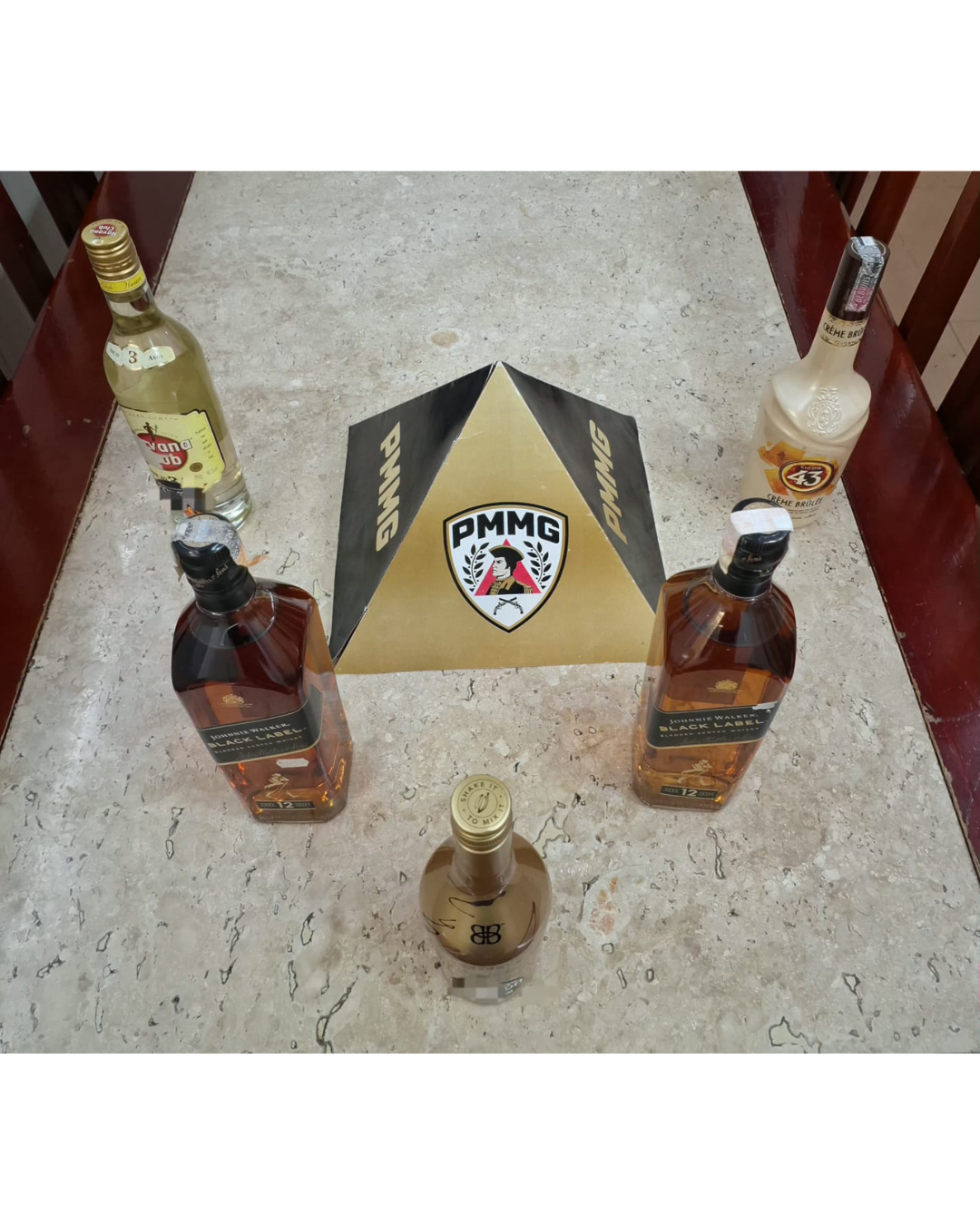 Durante a vistoria, foram encontradas cinco garrafas com indícios de irregularidade. Três eram bebidas importadas com rótulos apenas em língua estrangeira e sem comprovação fiscal. Outras duas garrafas de whisky apresentavam sinais de possível falsificação, como diferença na coloração do líquido, selo incompatível, lacre rompido e indícios de reutilização da embalagem.