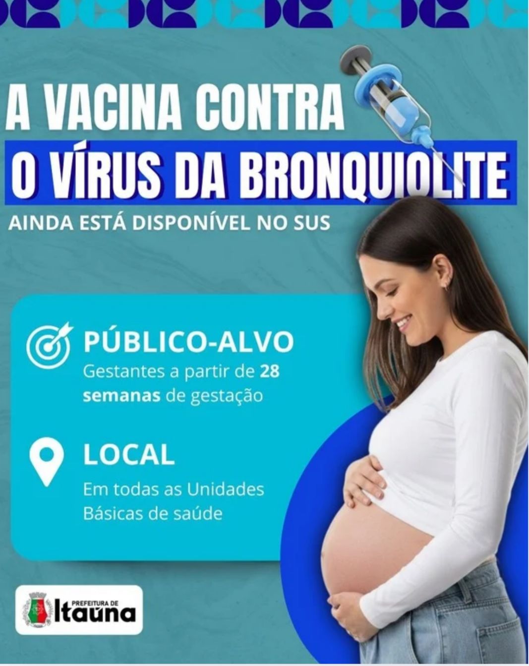A vacina contra o vírus sincicial respiratório (VSR), principal causador da bronquiolite, segue disponível gratuitamente pelo Sistema Único de Saúde (SUS) em Itaúna para gestantes a partir da 28ª semana de gestação. A imunização tem como objetivo proteger os recém-nascidos contra formas graves da doença nos primeiros meses de vida. Em Itaúna, a vacinação é uma estratégia importante de prevenção, já que a bronquiolite está entre as principais causas de internação de bebês, especialmente durante os períodos de maior circulação de vírus respiratórios. Ao receber a dose durante a gestação, a mãe transfere anticorpos ao bebê ainda no útero, garantindo proteção logo após o nascimento. As gestantes de Itaúna que fazem parte do público-alvo podem procurar qualquer Unidade Básica de Saúde do município para receber a vacina e esclarecer dúvidas com a equipe de saúde. A imunização é segura, eficaz e representa um ato de cuidado e prevenção com a saúde da mãe e do bebê. Por Fábio Melo com informações da Prefeitura de Itaúna