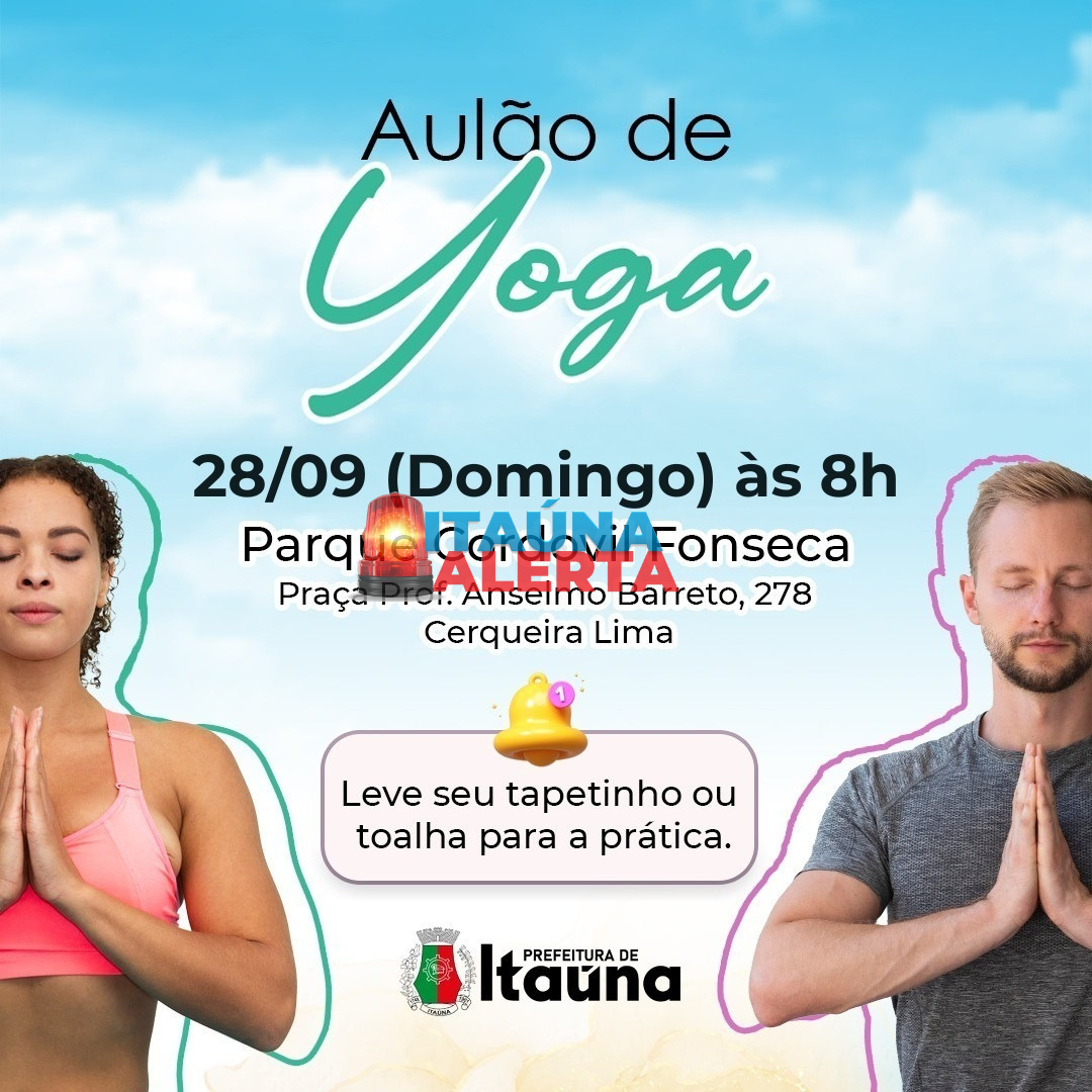A Prefeitura de Itaúna, em parceria com a Atma Yoga, realiza neste domingo (28) mais uma aula prática de yoga aberta à comunidade. A atividade será conduzida pelo professor William Souza, que segue os princípios do Maha Yoga Tradicional, transmitindo técnicas milenares de forma acessível para todas as idades e níveis de experiência. O encontro será no Parque Cordovil Fonseca, a partir de 08:00, com duração de uma hora e meia. Para participar, basta levar um tapetinho ou toalha para a prática. De acordo com os organizadores, a iniciativa busca promover saúde e bem-estar, oferecendo benefícios como a redução do estresse e da ansiedade, melhoria da postura e da respiração, além do fortalecimento da saúde mental. O projeto também contribui para a integração social e a valorização dos espaços públicos da cidade. Da redação com informações da Prefeitura de Itaúna