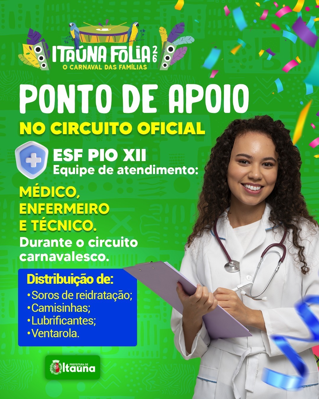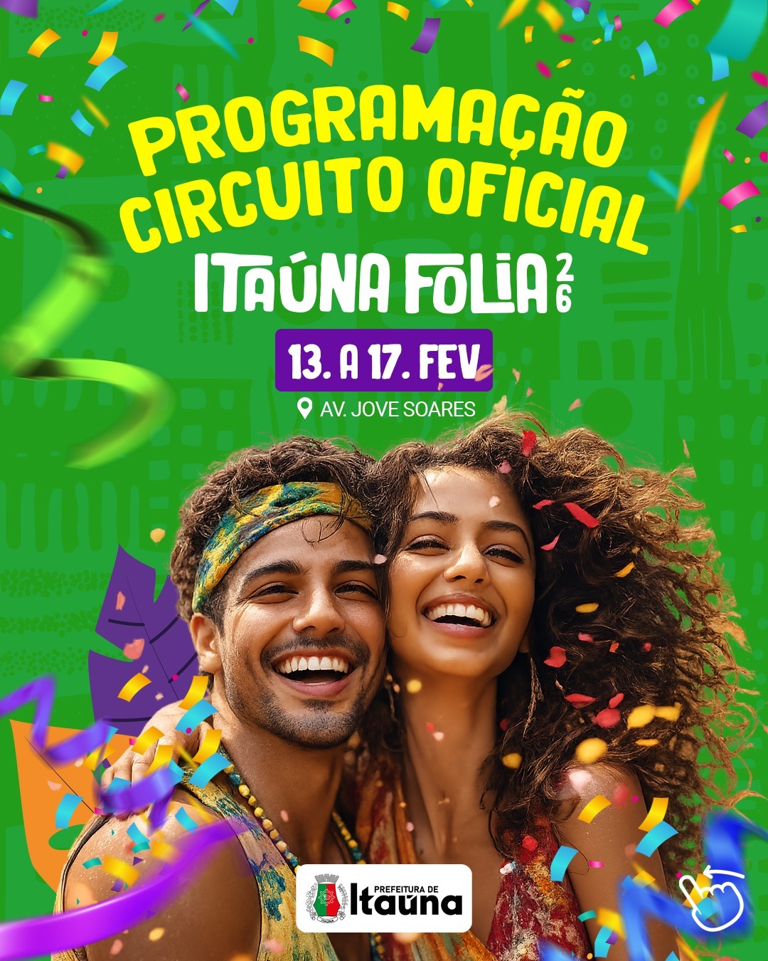 A Prefeitura de Itaúna divulga a programação oficial do Itaúna Folia 2026, que acontece entre os dias 07 e 17 de fevereiro, reunindo grandes atrações no circuito da Avenida Jove Soares e mantendo viva a tradição dos blocos nos bairros da cidade.A festa contará com som mecânico todos os dias, desde a abertura até o início das apresentações, garantindo animação contínua para os foliões. Além dos shows no circuito oficial, diversos blocos tradicionais movimentam os bairros com cortejos, baterias e bandas convidadas, fortalecendo o espírito cultural do carnaval itaunense. Programação – Circuito Carnavalesco Mestre Bolão – Av. Jove SoaresBlocos do Circuito:17h – Bloco Losanguinhos19h – Bloco CCI no Egito20h – Bateria da Beija-FlorShow:18h – Swingueira do Mestre Tonton (no trio elétrico)Som mecânico da abertura até o início das apresentações. Sábado – 14/02Blocos do Circuito:17h – Bloco Unidos da Ponte19h – Bloco Alfaces20h – Bloco Deu no que DeuShows:13h – Bagunça Boa16h – Rodrigo Bergal 📅 Domingo – 15/02Blocos do Circuito:16h – Bloco Pixurucos18h – Bloco Sertanejeiros20h – Bloco Vem que VemShows:Som mecânico a partir das 12h16h – Diogo Rebello Segunda-feira – 16/02Shows:14h – Victor Borges16h – Retrosamba Terça-feira – 17/02Shows:14h – Tô de Boa16h – Bateria Show Babaloo Programação dos Blocos de Bairro 13/02 – Sexta-feira17h – Bloco Boca de SanfonaAv. Platina, em frente ao nº 331 – Padre EustáquioAtração: Bateria do Baballo às 19h 14 e 16/02 – Sábado e Segunda12h – Bloco Esplendor e GlóriaPraça Doutor Augusto GonçalvesAtrações: Banda MIXSAMBA + Banda Barril de Chopp 15/02 – Domingo13h – Bloco Batuca TremR. Jair Miguel – ItaunenseAtração: Grupo Retrosamba às 18h13h – Bloco da PracinhaPraça José Lima Guimarães – PiedadeAtrações: Grupo Bagunça Boa + Banda Barril de Chopp + Bateria Turbinada do Mestre Tom Tom A Administração Municipal reforça que o evento contará com estrutura de segurança, apoio das equipes de saúde e organização especial para garantir um carnaval animado, seguro e preparado para receber moradores e visitantes.A programação completa do Itaúna Folia 2026 está disponível nos canais oficiais da Prefeitura de Itaúna. Da redação com informações da Prefeitura de Itaúna