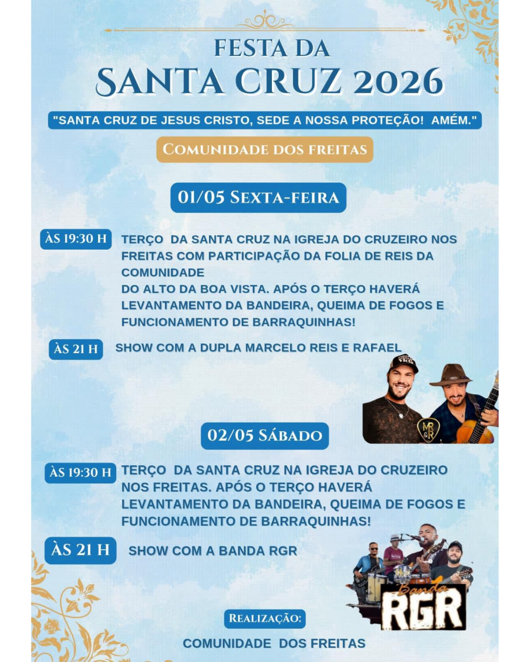 A Comunidade dos Freitas, em Itaúna, realiza nos dias 1º e 2 de maio a Festa da Santa Cruz 2026, com atividades …